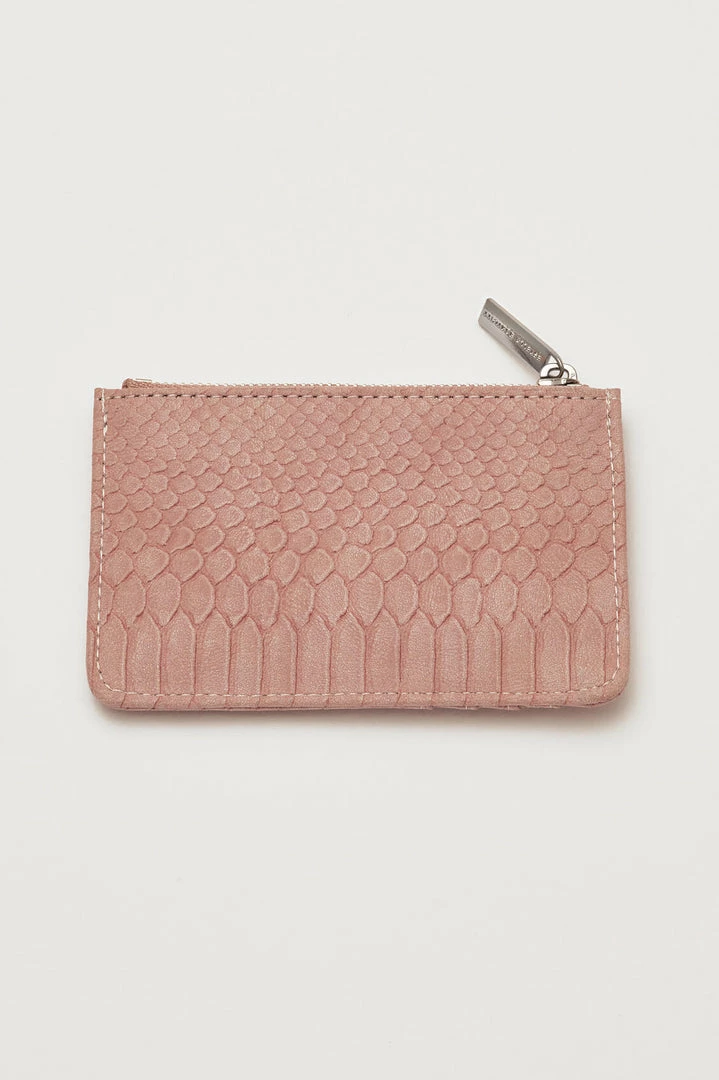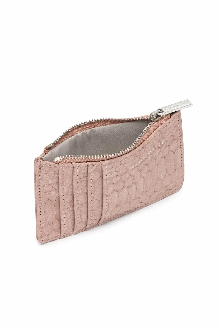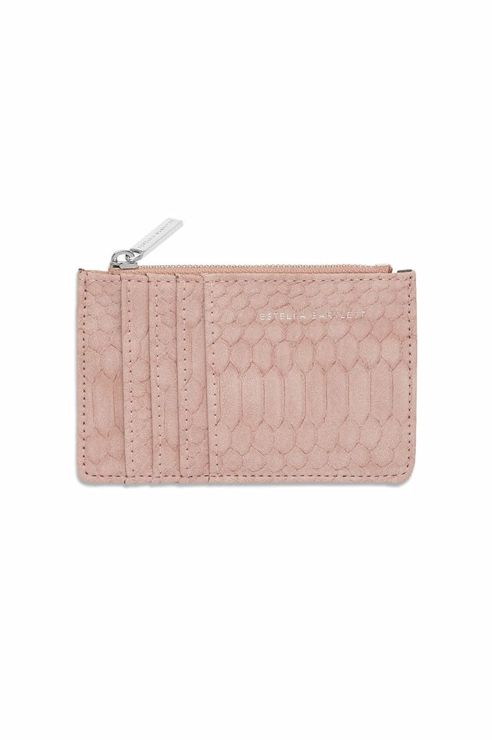 Carry all of your essentials in one place. The ideal size to slip into your pocket, clutch or even go bag free. Featuring four slots for your most used cards and a zip compartment to keep your change and receipts. With signature Estella Bartlett hardware and finished in a dreamy blush pink snake effect.