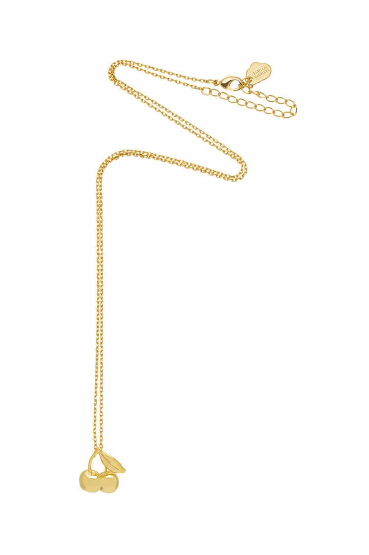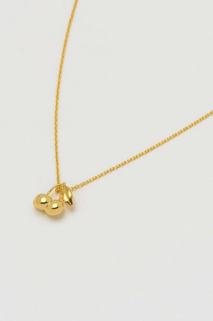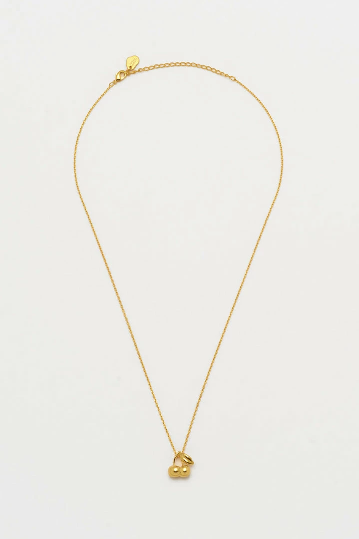 This playful piece is a chic and classic accessory that’s perfect for dressing up your summer looks. Minimalist in design this delicate gold plated necklace is completed by a dainty duo of cherries.