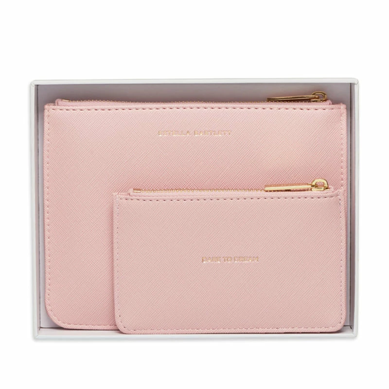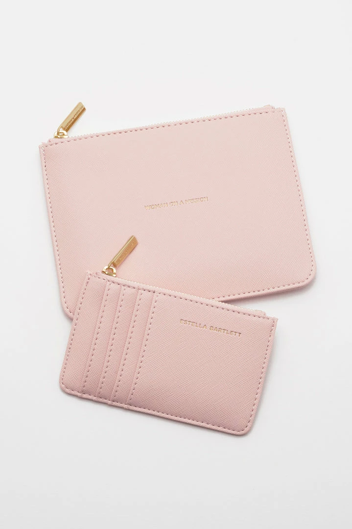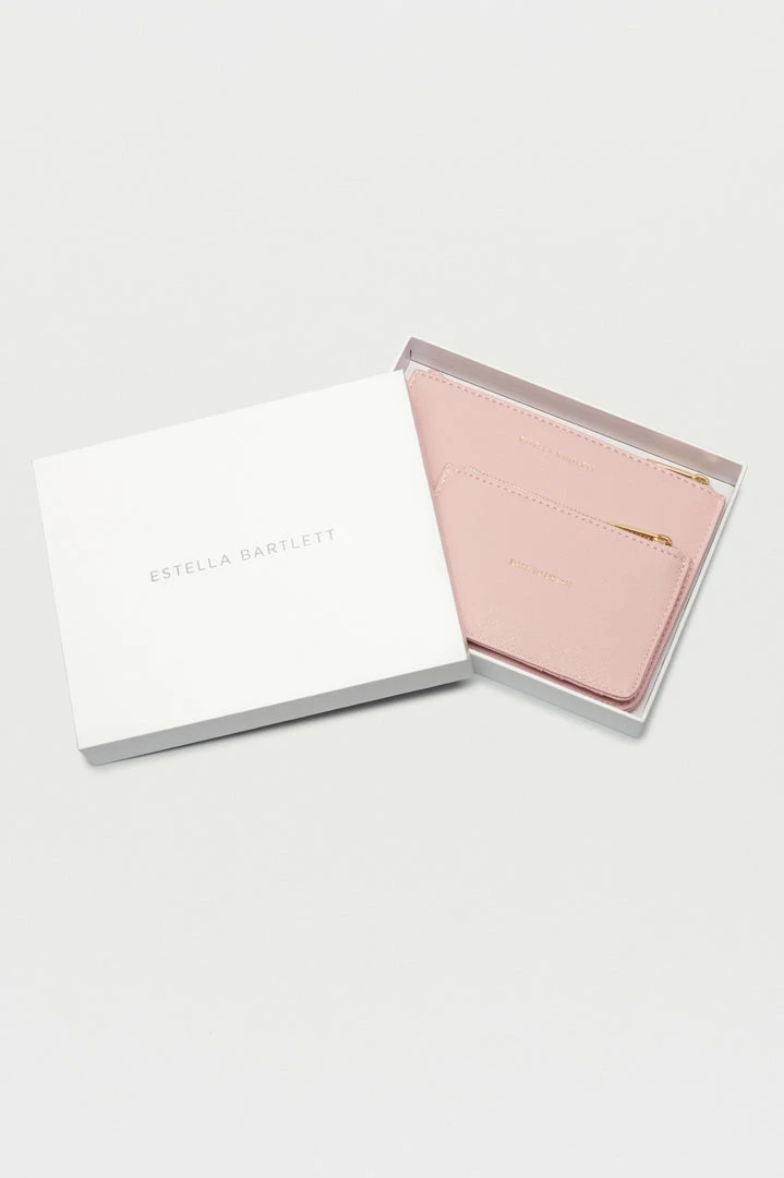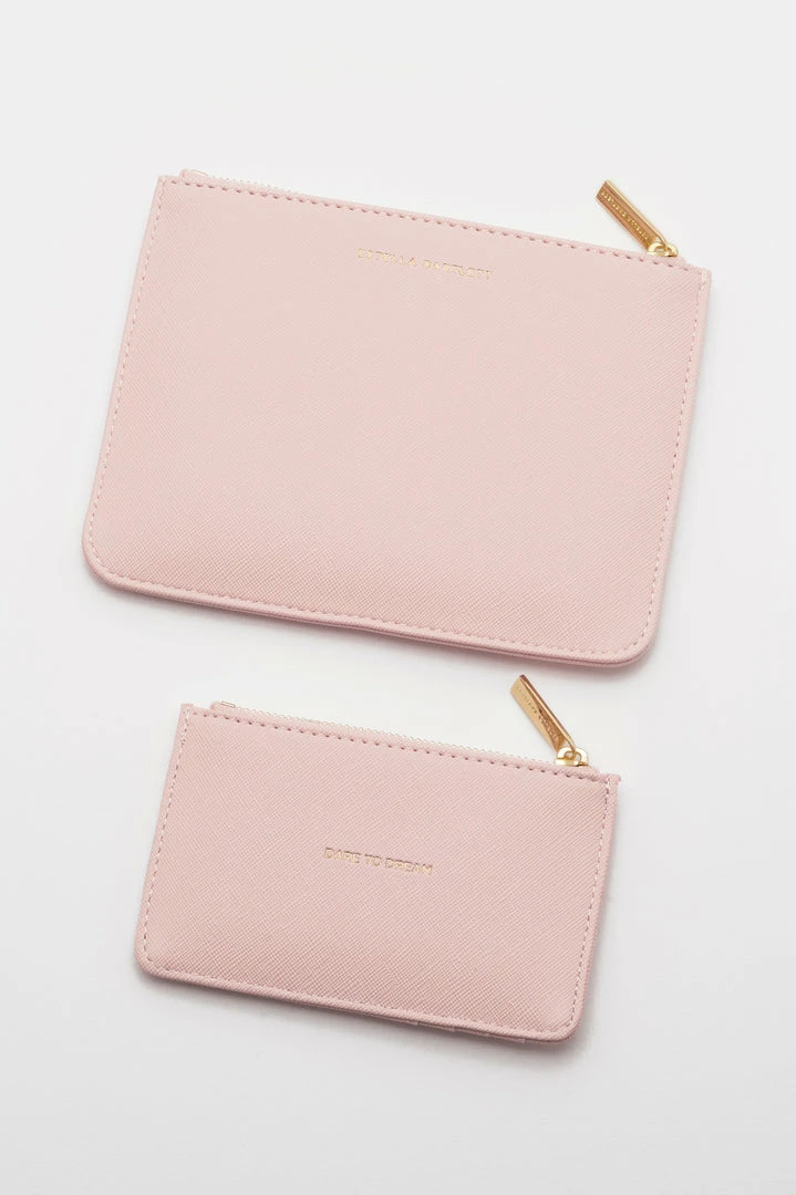 Featuring the classic Estella Bartlett small pouch and card purse designs, this exclusive gift set is embedded with our iconic ‘Dare To Dream’ message and finished in a soft, blush pink.