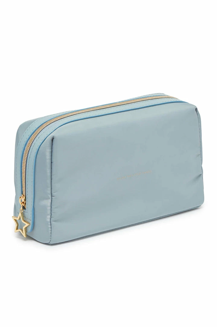 Ideal for travelling with toiletries, this pouch is both practical and stylish, and big enough for all your toiletry necessities. In a powder blue, this pouch is inscribed with the message ‘Enjoy the Little Things’.