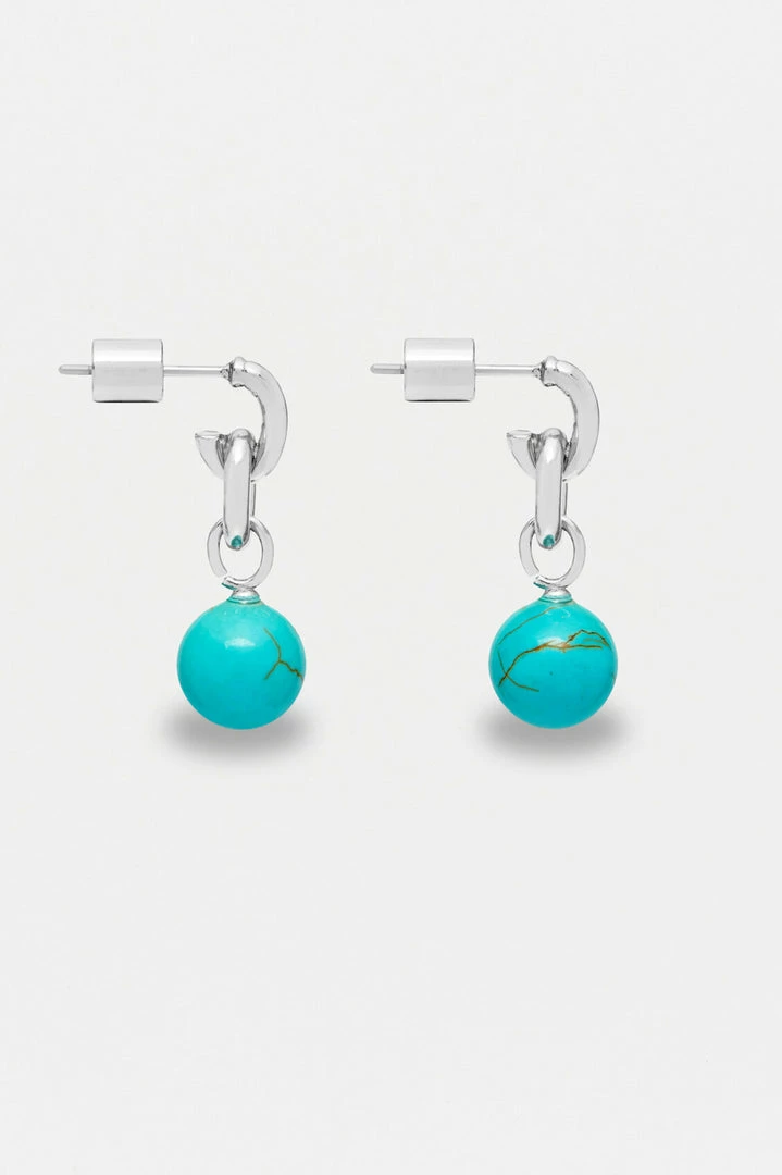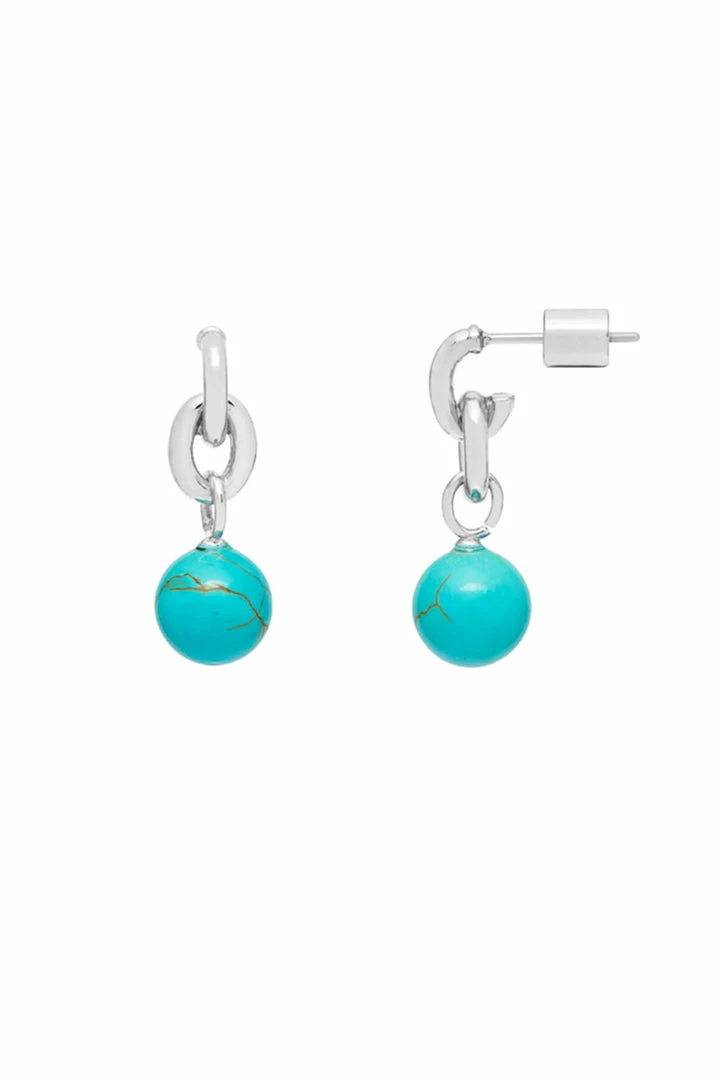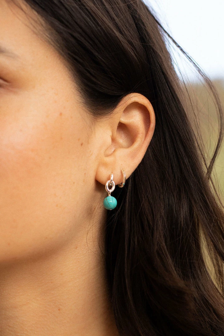 Designed with both simplicity and elegance in mind, these Gemstone Drop Hoop Earrings feature a stunning Turquoise Howlite gemstone suspended from a delicate silver plated hoop. Style solo or stack with minimalist pieces for a bolder look.