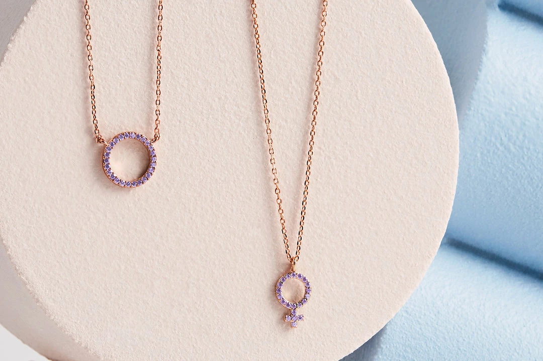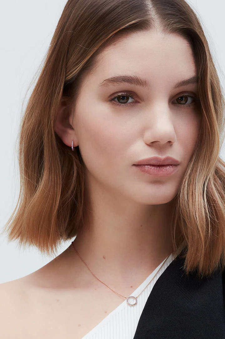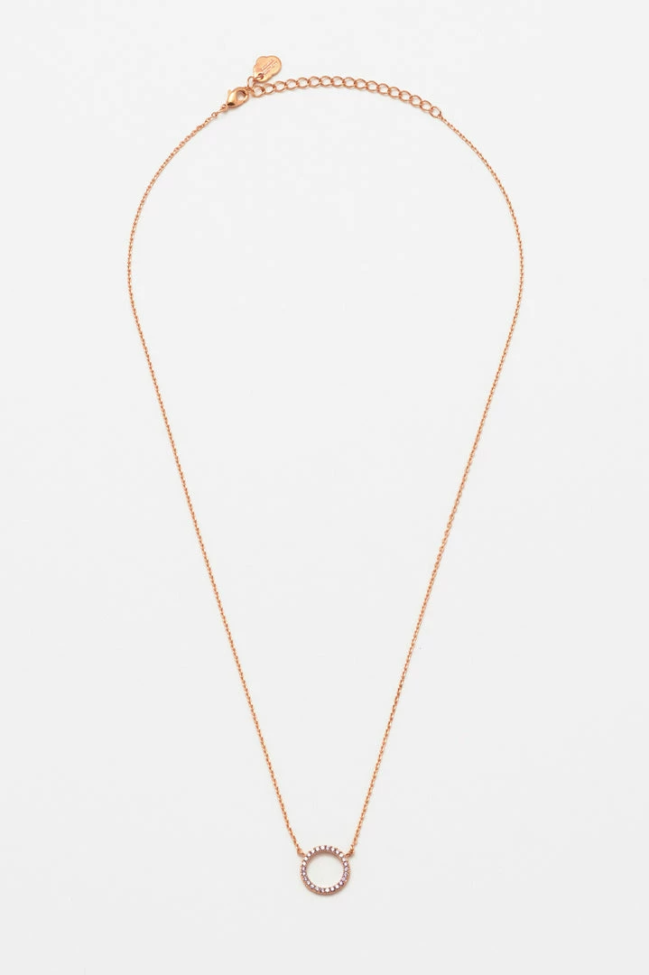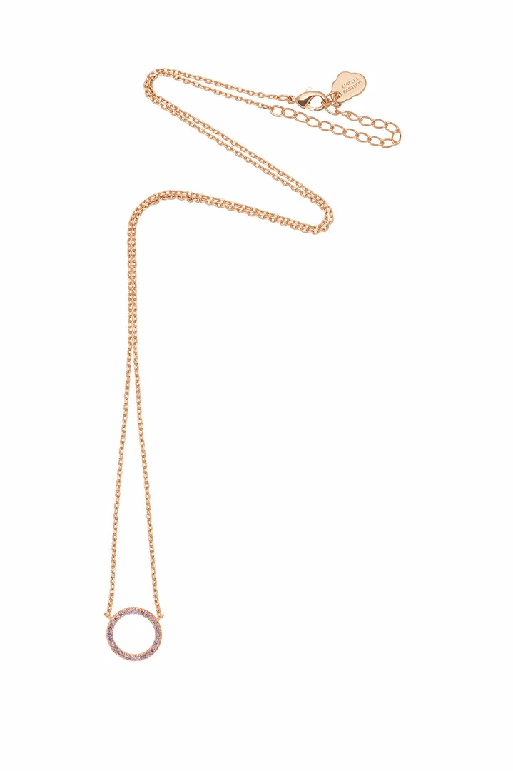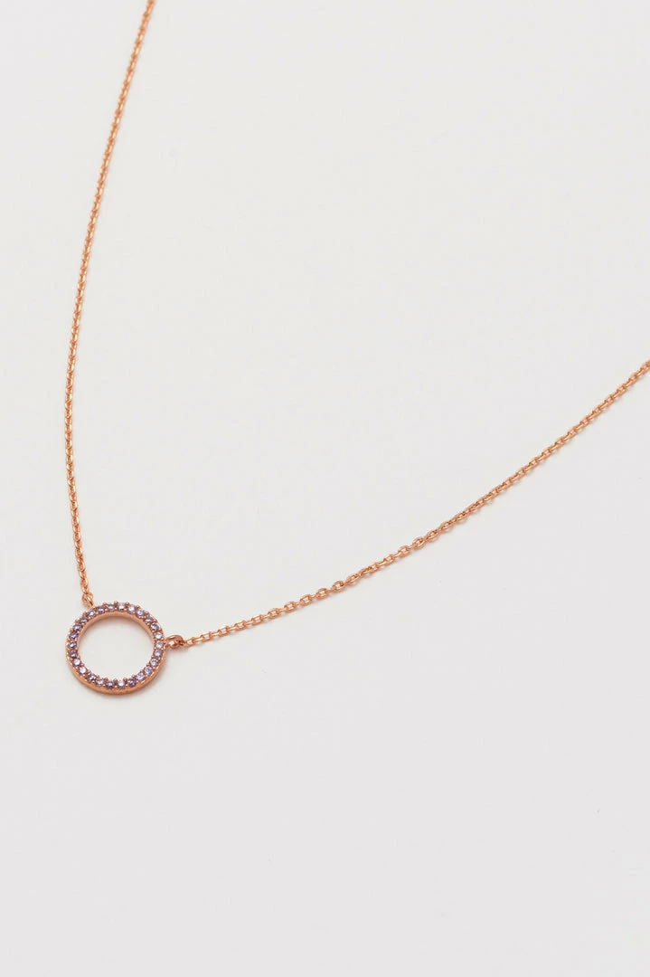 A minimalist piece with added sparkle and colour, this lavendar and rose gold circle necklace is the epitome of simplicity and a timeless addition to your jewellery collection.