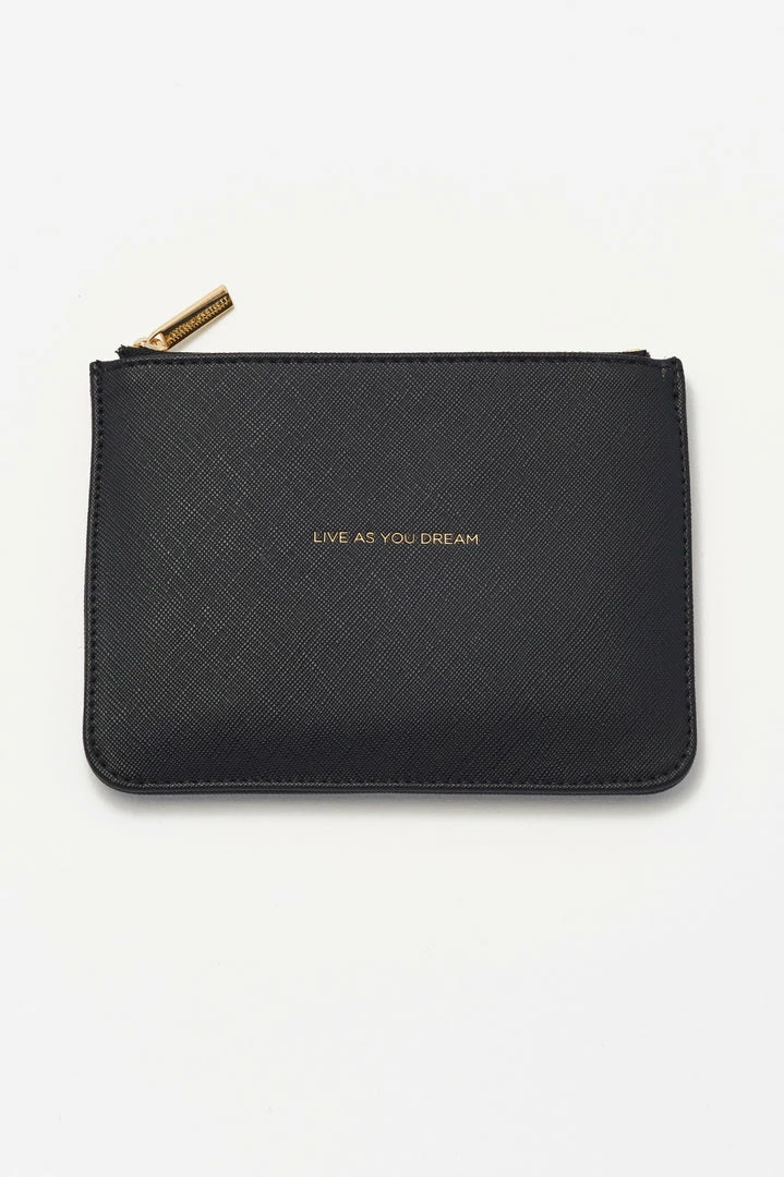 This small pouch, embossed with the inspirational message ‘Live As You Dream’, is the most stylish way to declutter your essentials. Sure to become a permanent feature in your bag, this pouch can also be used as a standalone clutch.