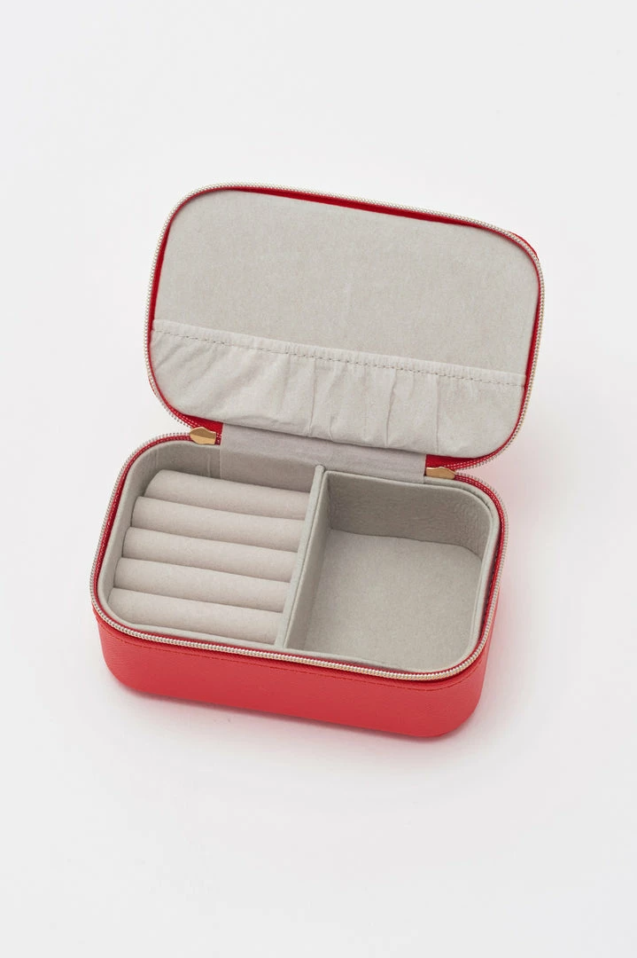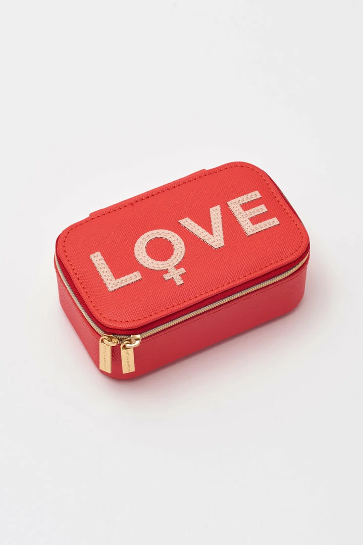 Keep all of your treasures safe with our mini jewellery box. With compartments for earrings, bracelets and necklaces. Finished in a coral vegan leather with bold applique in blush, this mini jewellery box is the perfect way to keep everything organised when you’re on the go.