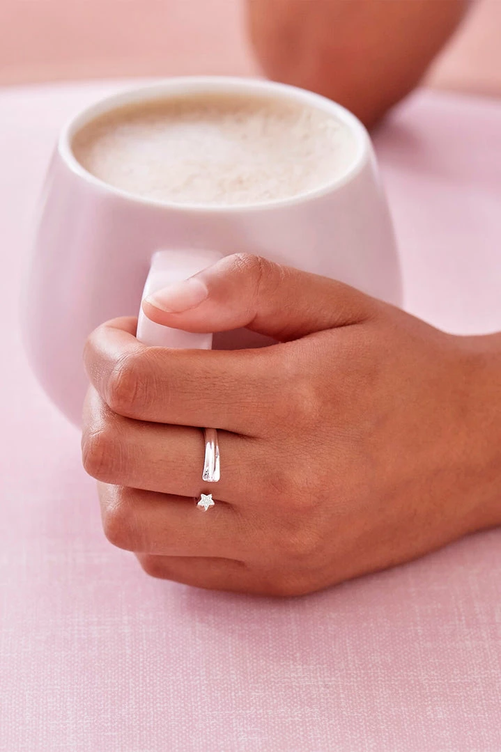 This statement ring is perfect for elevating your look with minimal effort. With its open, slip-on style and sparkling star details, it’s ideal for layering with your other rings or simply worn solo for a chic and modern look.