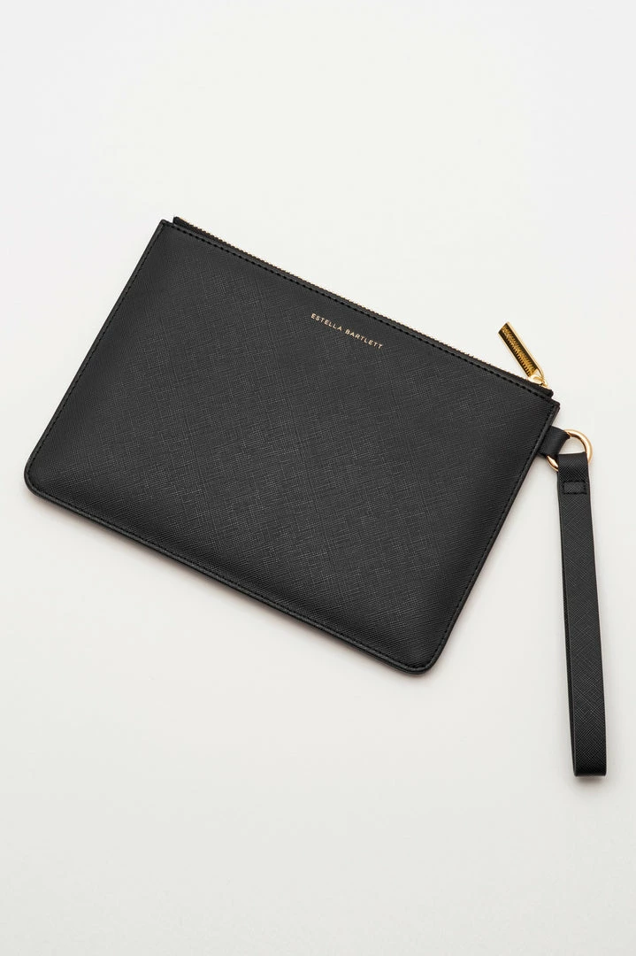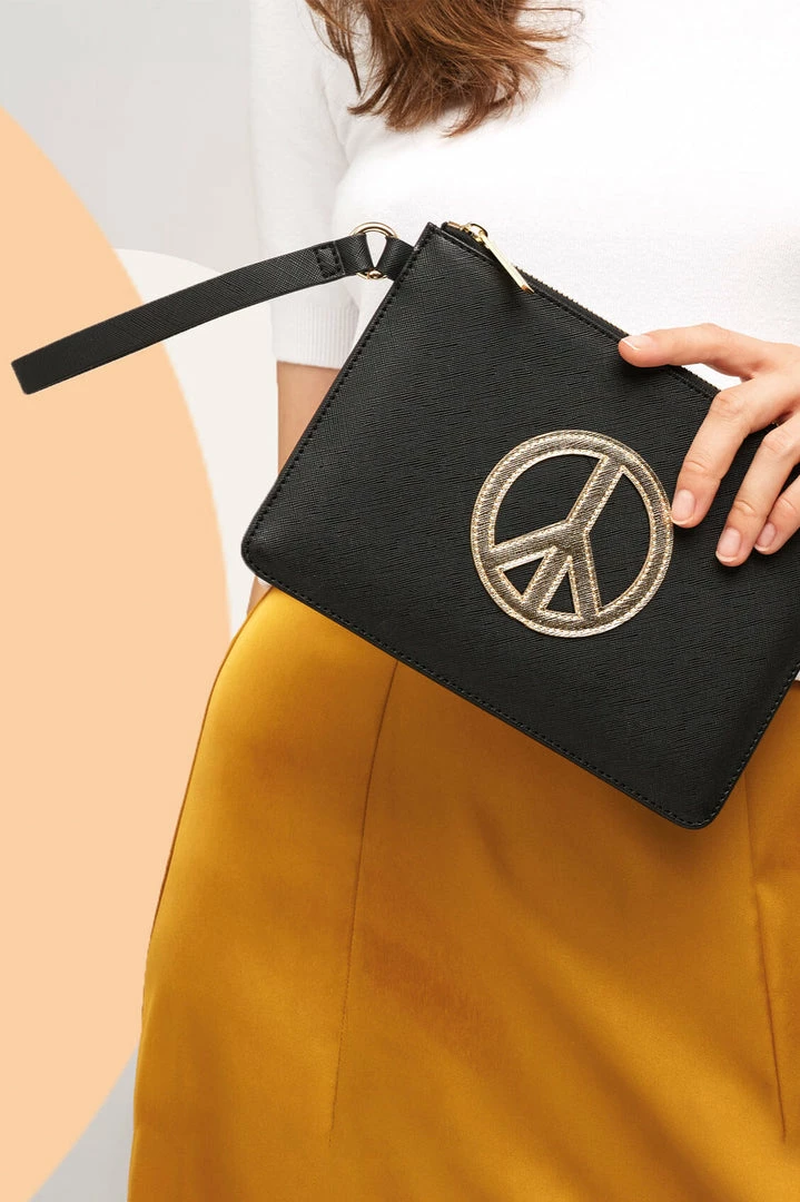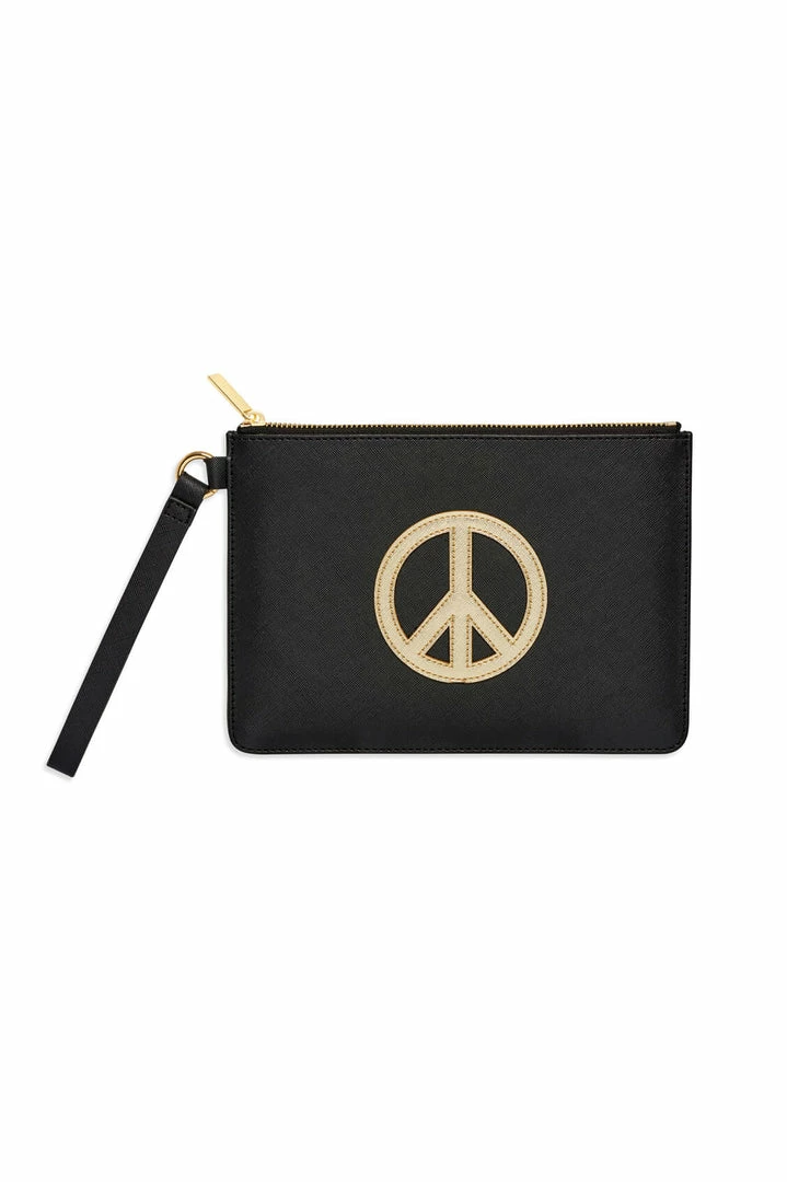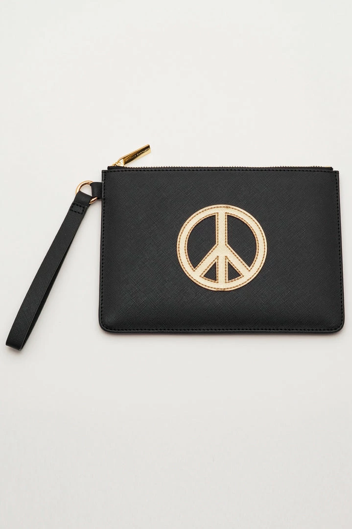 The classic Estella Bartlett Pouch has had an upgrade, with bold applique and a handy strap. Complete your look with this black and gold Peace Applique Medium Pouch, the perfect accessory to carry everything you need, everywhere you go. Made from vegan friendly leather, this pouch features an applique design with signature Estella Bartlett hardware.