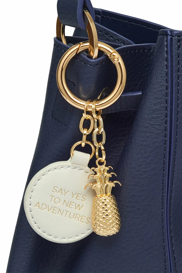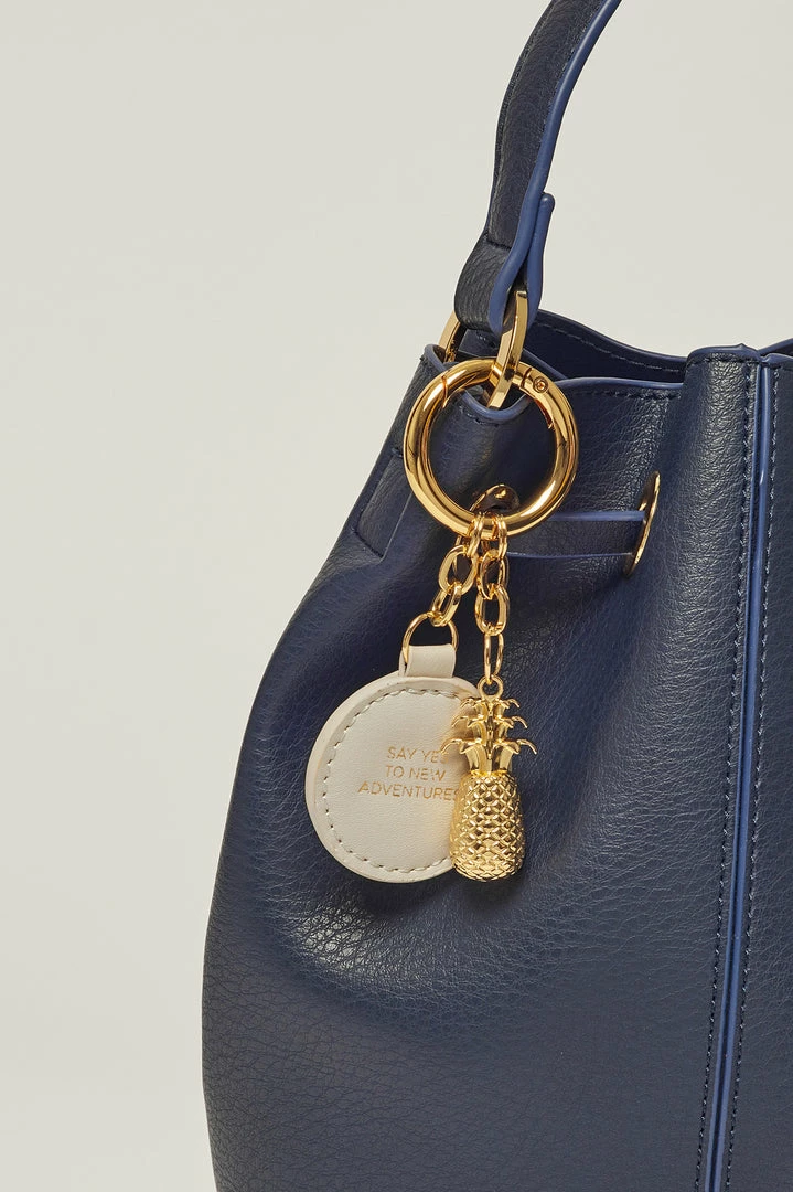 The Milcote is a versatile drawstring bag with a removable cross body strap, making it perfect for everyday use. Made with an alternative leather that’s vegan friendly, this bag has one main compartment ensuring there is plenty of room for all your daily essentials. This Estella Bartlett bag comes with an added gold pineapple charm and a stone bag tag with the message ‘Say Yes to New Adventures’.