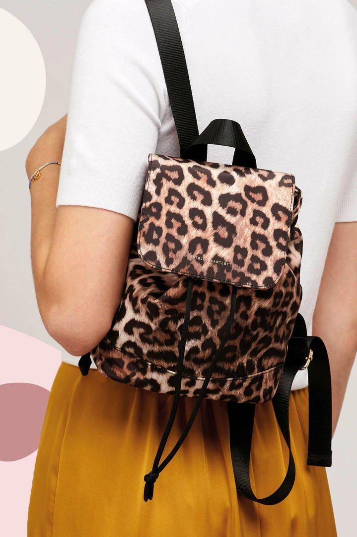 In durable nylon for a contemporary feel this Mini Copperfield Backpack is the perfect size for wearing on the go. In a chic leopard print, the Mini Copperfield is finished with gold tone hardware. With more than enough room for your essentials and two internal pockets to keep you organised.