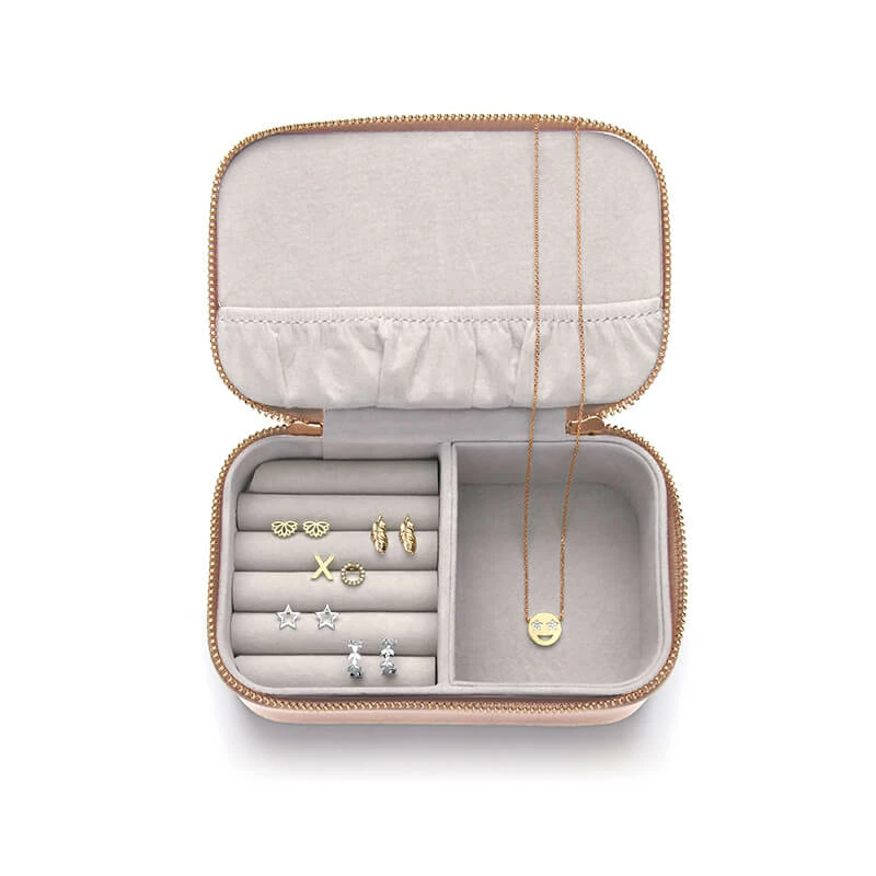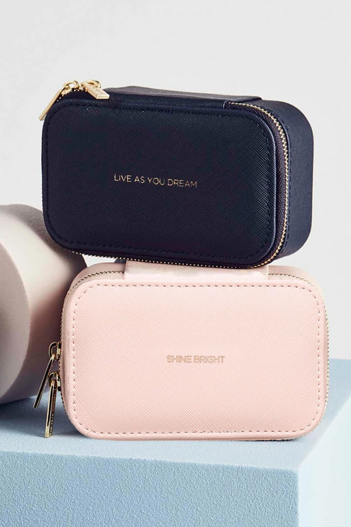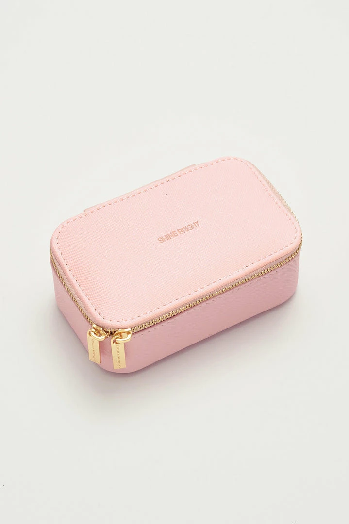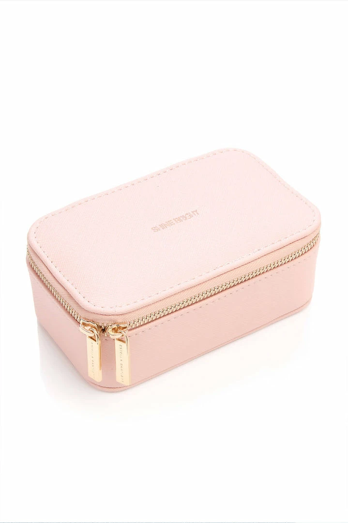 Look after all your Estella Bartlett jewellery with this ‘Shine Bright’ mini jewellery box. With compartments for earrings, bracelets and necklaces. Finished in a blush vegan friendly leather, this mini jewellery box is the perfect way to keep everything organised when you’re on the go.