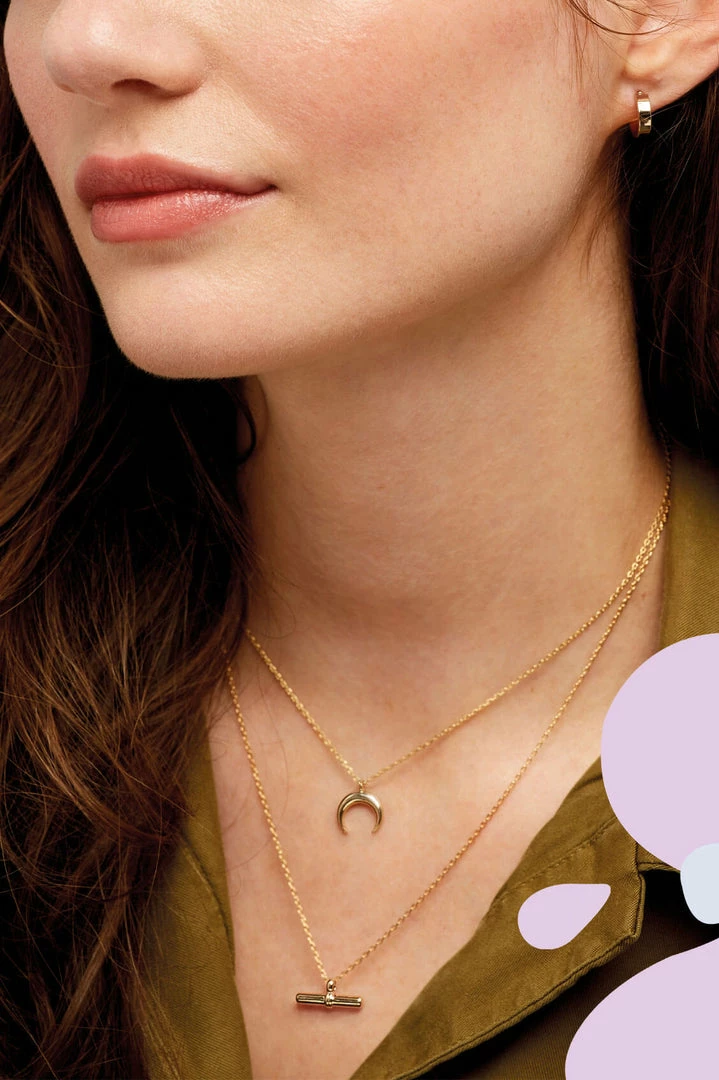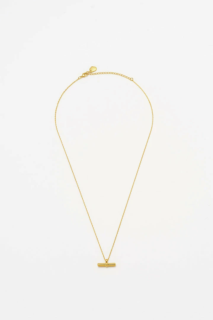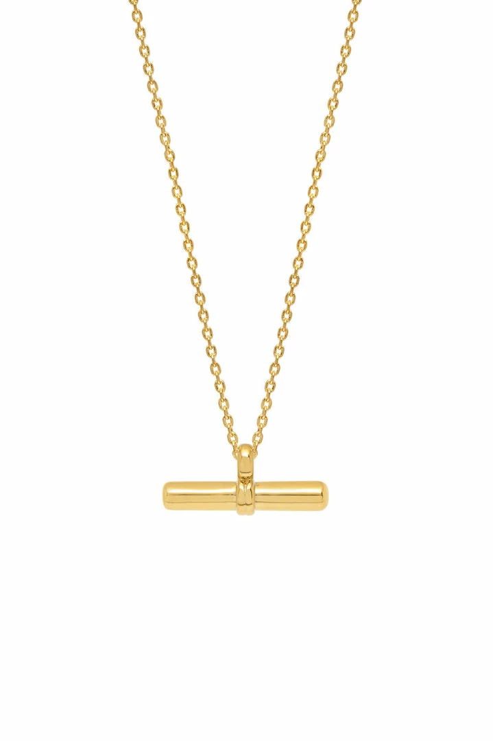 A modern classic, the T-Bar Necklace is a simple pendant with a gold plated horizontal bar charm. This necklace will go well with absolutely any outfit, and looks brilliant on its own or paired with other gold necklaces.