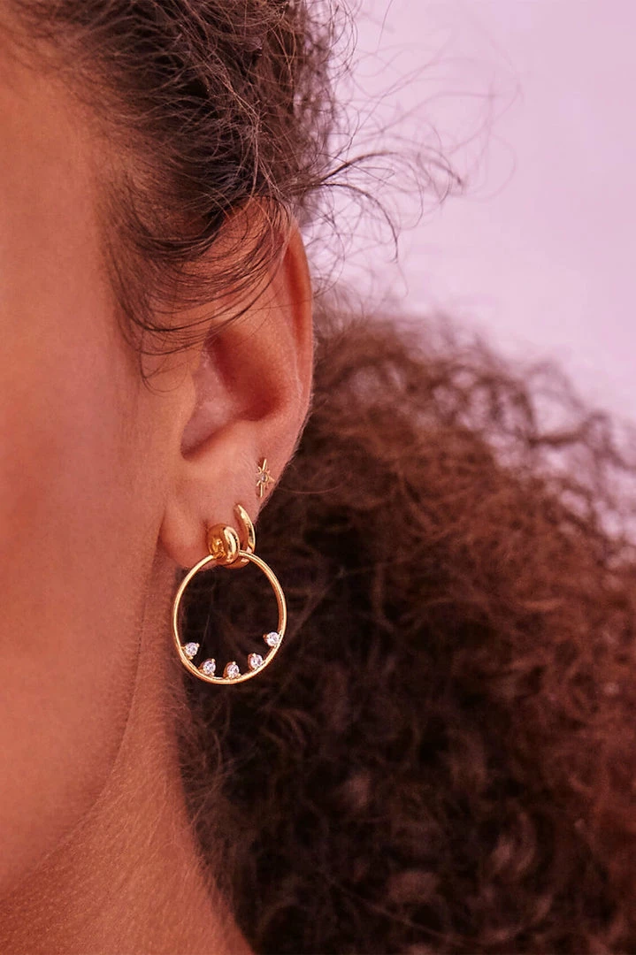 This statement pair of hoop earrings are the perfect way of elevating your look with minimal effort. Featuring a bold hoop adorned with delicate drops of cubic zirconia, these Teardrop CZ Circle Earrings are a must have for any jewellery lover.