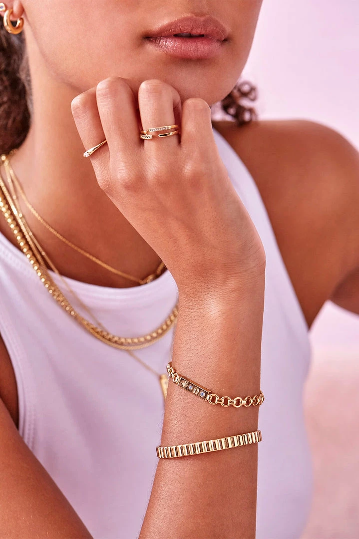Each Estella Bartlett bangle arrives delicately cushioned in a grey pouch to safely store and preserve your piece. Read more about our care guidelines here.