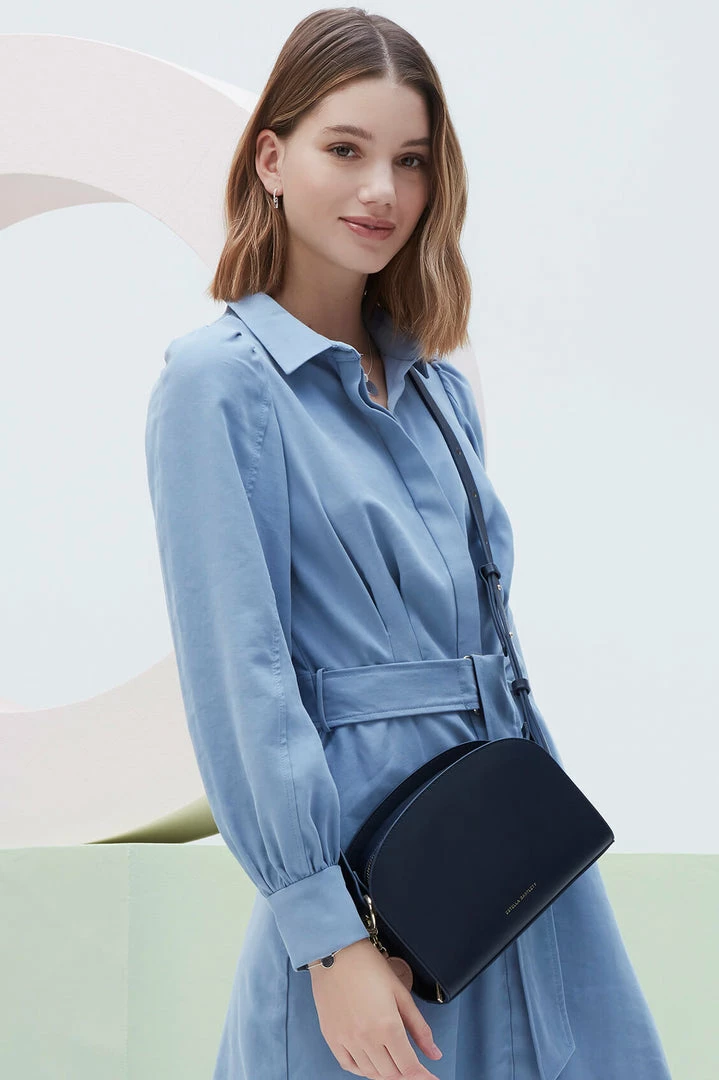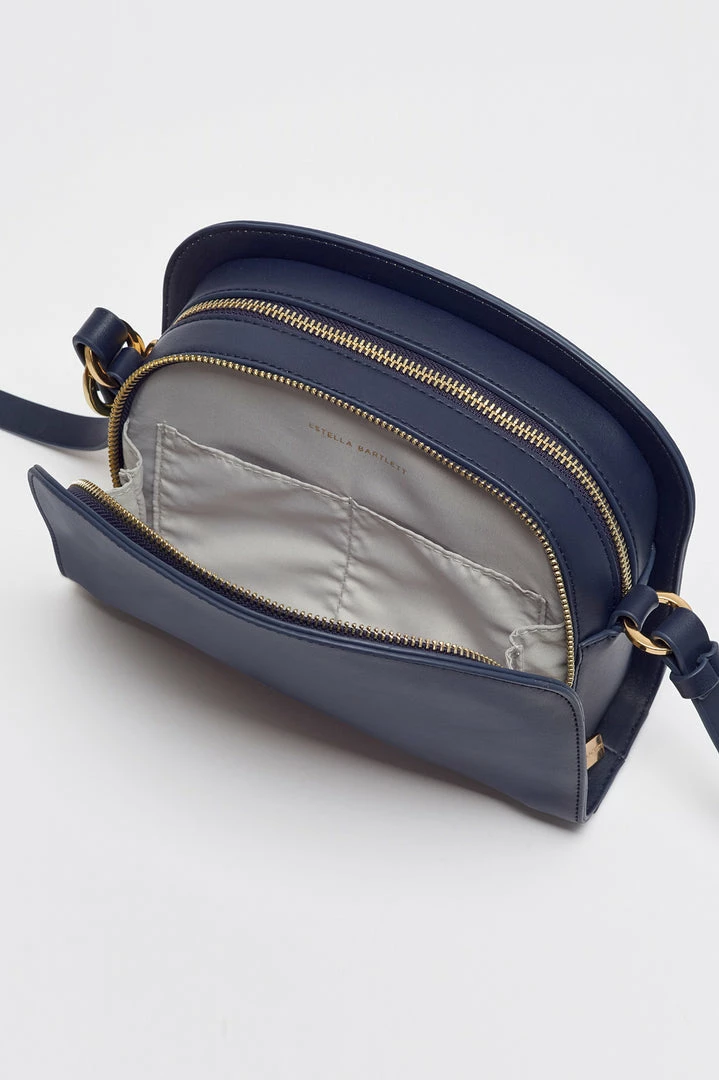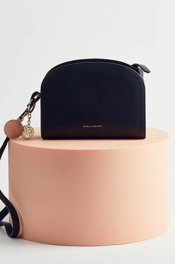An Estella Bartlett twist on the classic half moon bag. The Deacon is effortlessly elegant, and the perfect size to contain everything you need out and about. In smooth black faux leather, this will soon become your new favourite.