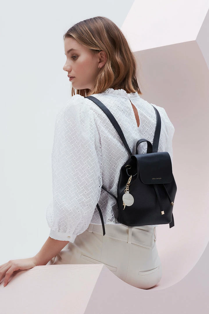 This mini backpack is the perfect balance of chic and practical, in a beautiful smooth faux leather. Roomy enough for all your everyday needs, this bag contains two internal pockets to keep you organised.