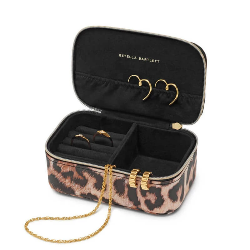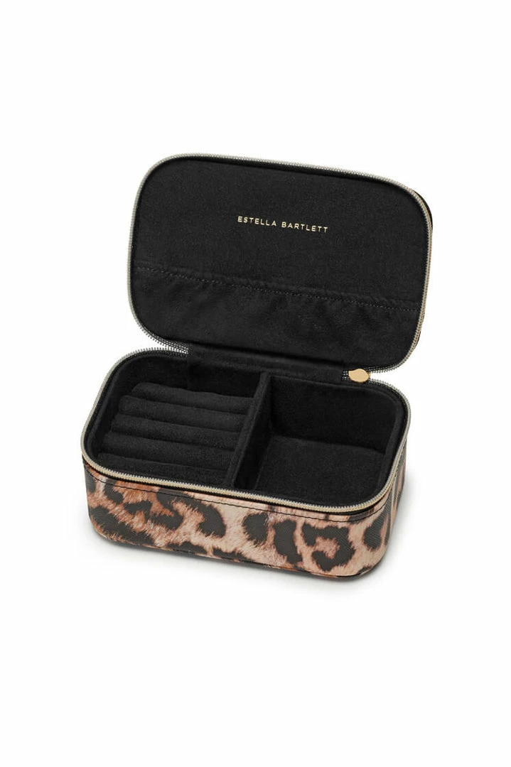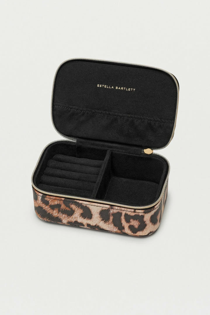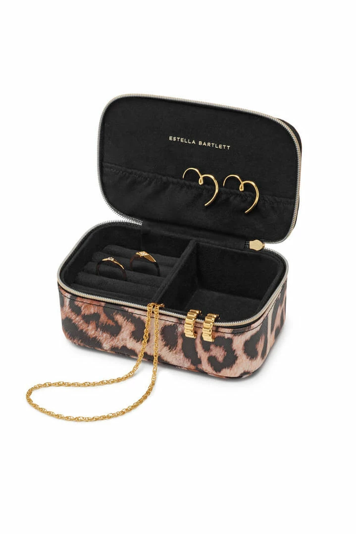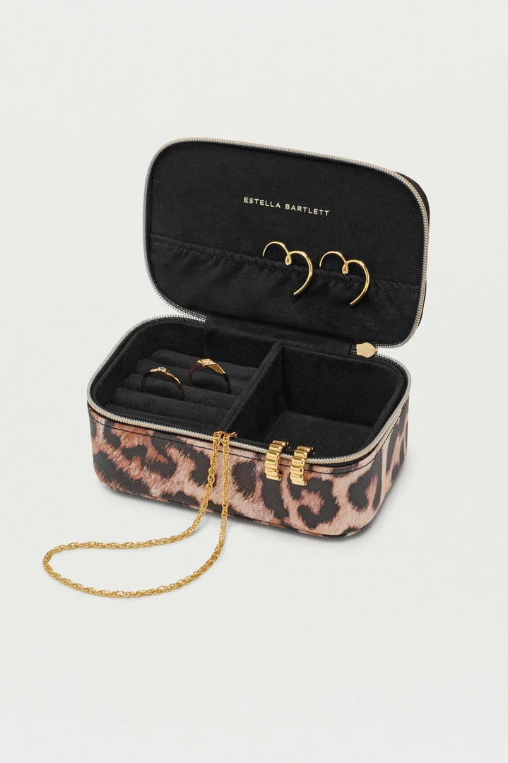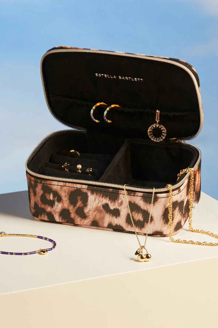 With protective compartments for your earrings, bracelets and necklaces this jewellery box is perfect for taking your most loved treasures wherever you go. Finished in a bold leopard print, this jewellery box is as chic as it is practical. With signature Estella Bartlett hardware.