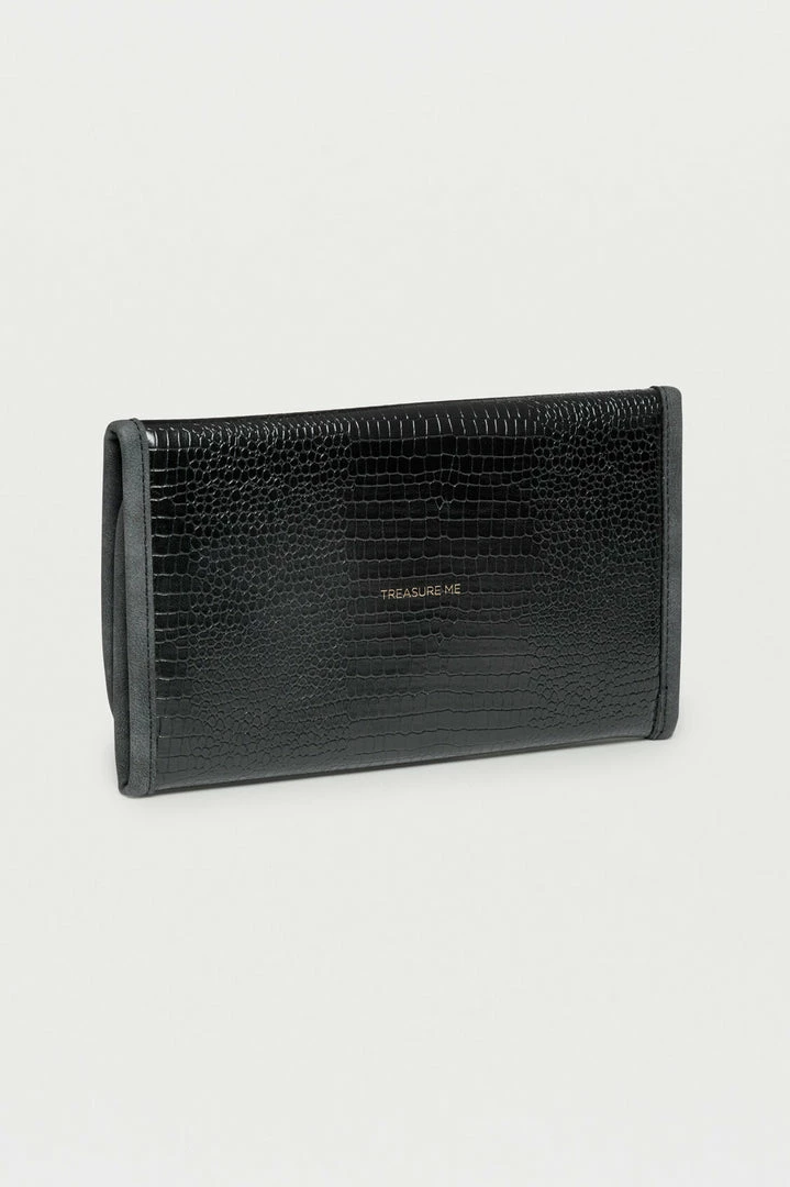 This practical piece features protective fastenings for your necklaces and bracelets and a handy zip compartment for earrings. Finished in a chic, textured cheetah print.