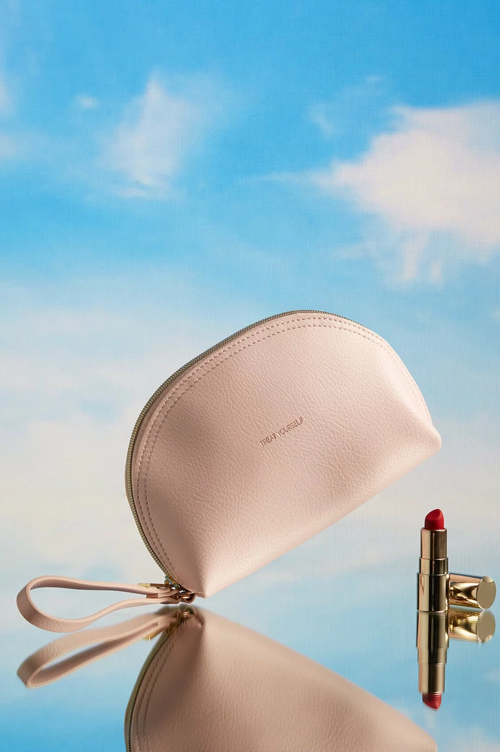 Finished in a soft and subtle blush and featuring the motivational message ‘Treat Yourself’.With signature Estella Bartlett hardware.