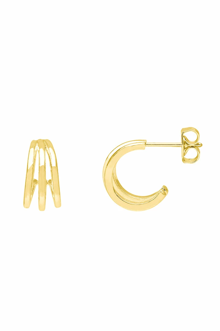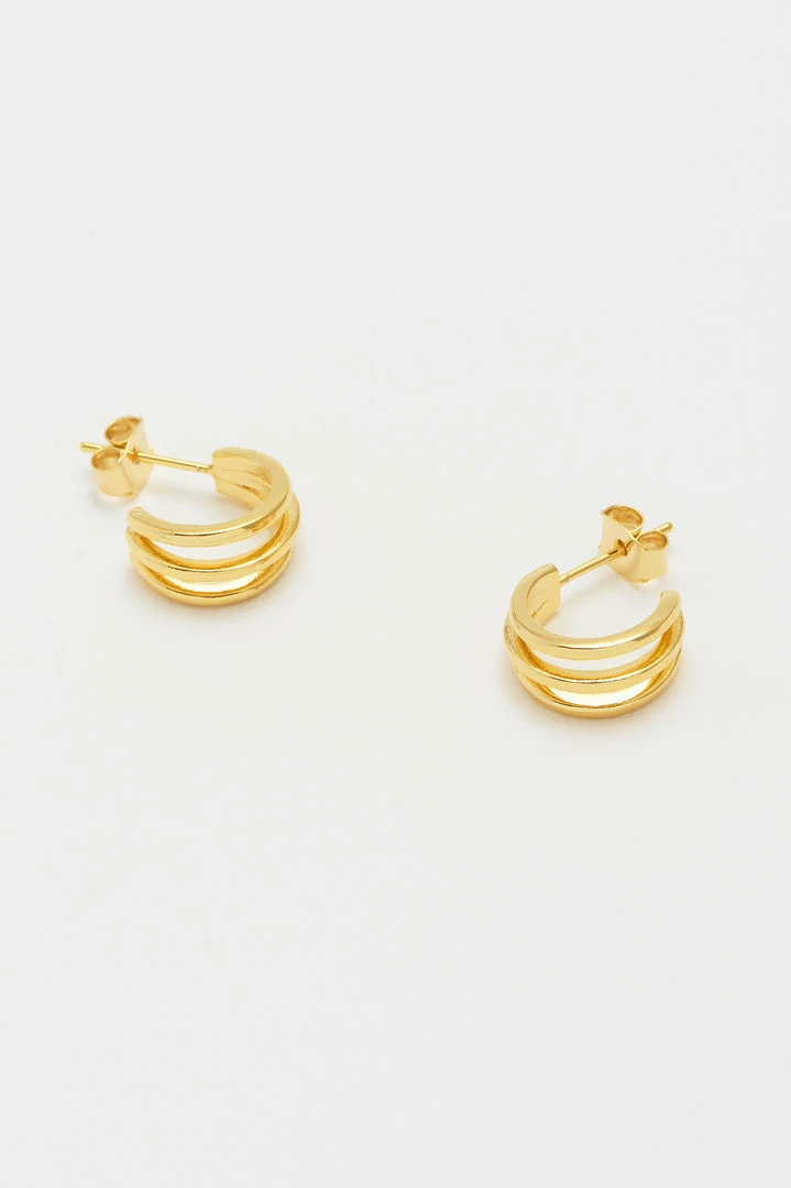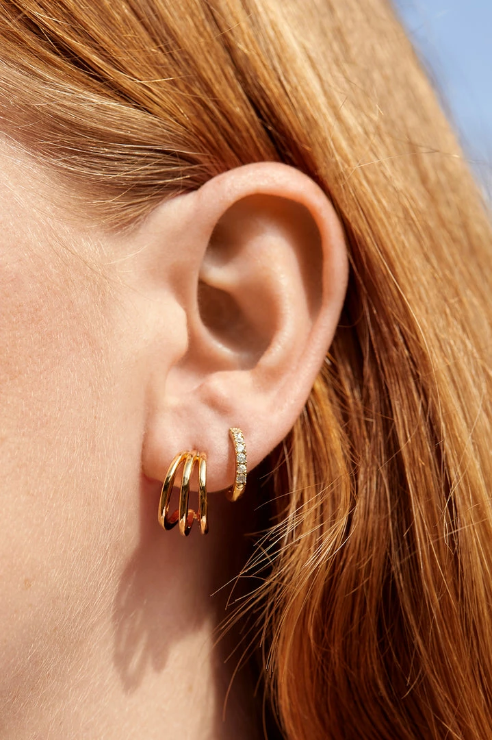 Formed of three simple curved hoops, our Triplet Hoops are the ultimate stand-alone piece. A new icon to add to your collection, this gold plated minimal piece is a statement all on its own.