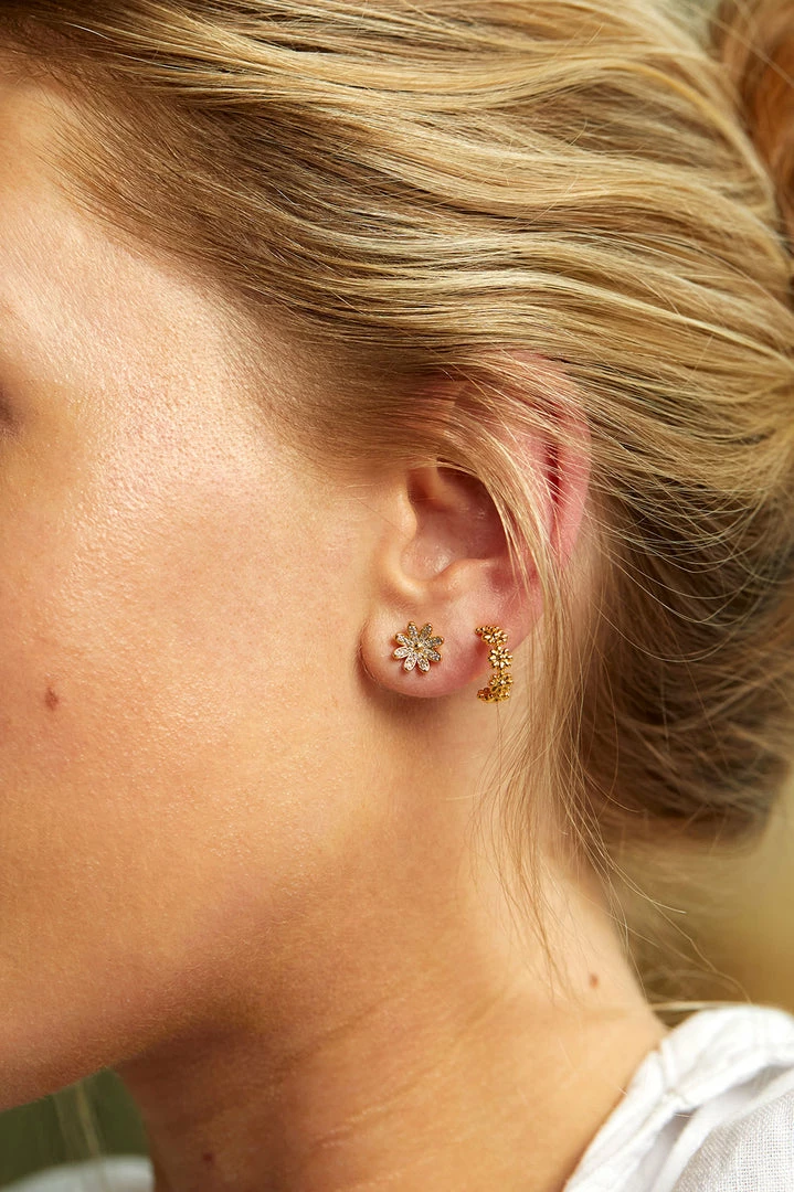 A playful twist on the classic hoop, these Wildflower Daisy Chain Hoop Earrings make the perfect everyday accessory. Style solo or layer up with a stack of golden studs.
