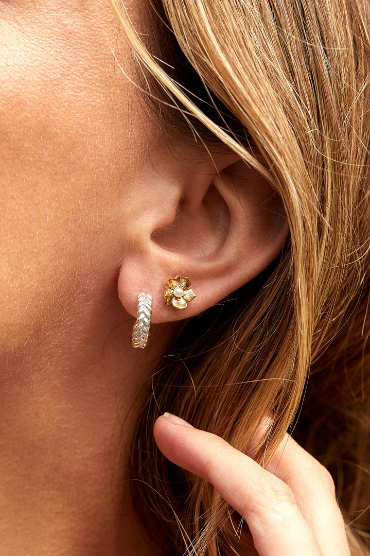 Inspired by summer wicker baskets, our Woven Hoops add texture to your ear stack. With its chunky form and delicate rope design, these gold plated hoops will quickly become your new favourite.